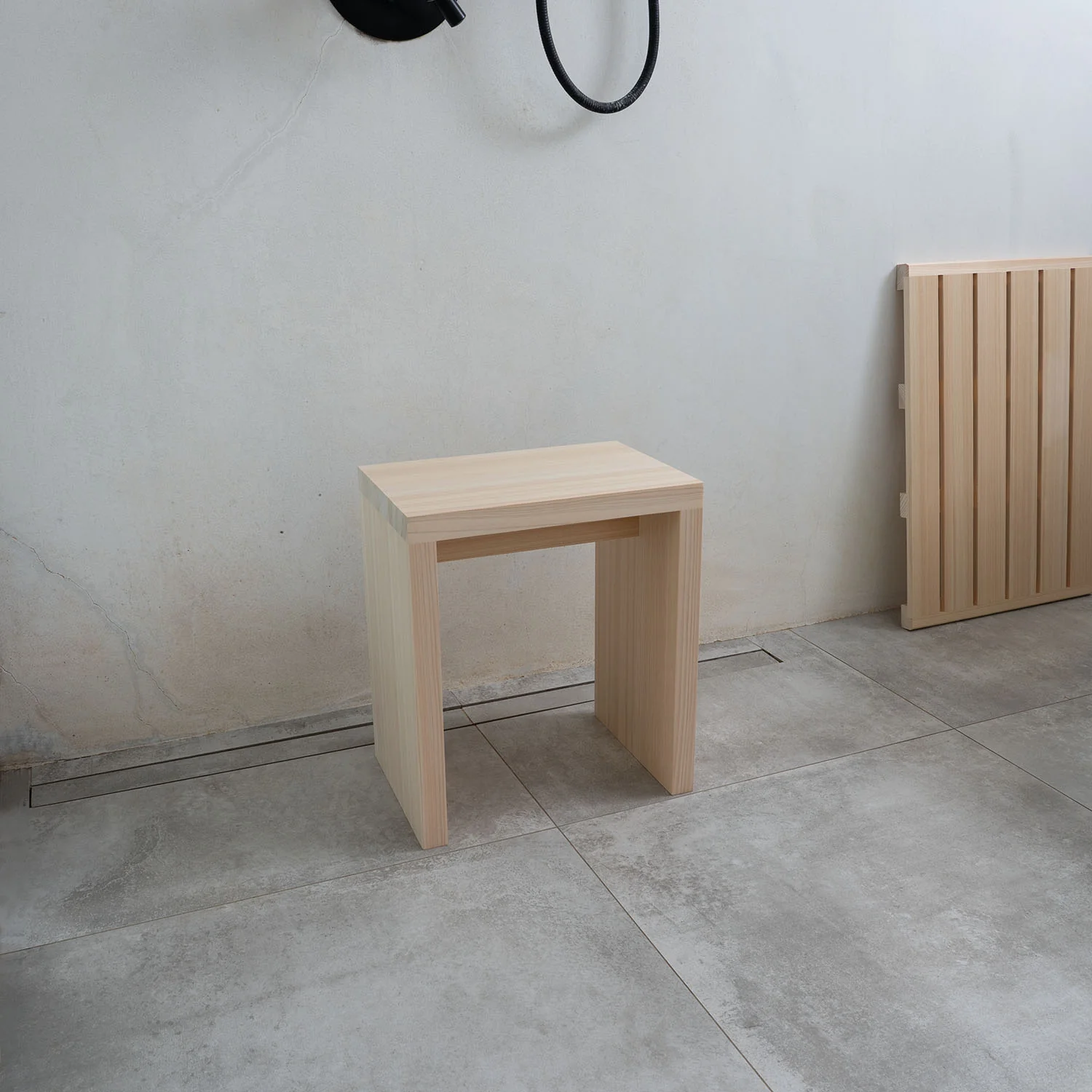 Each stool is made entirely from masame (straight-grain) Hinoki, the most refined cut of the wood. The natural straight grain enhances both visual harmony and structural stability, revealing a gentle rhythm that accentuates the stool’s clean, architectural lines.